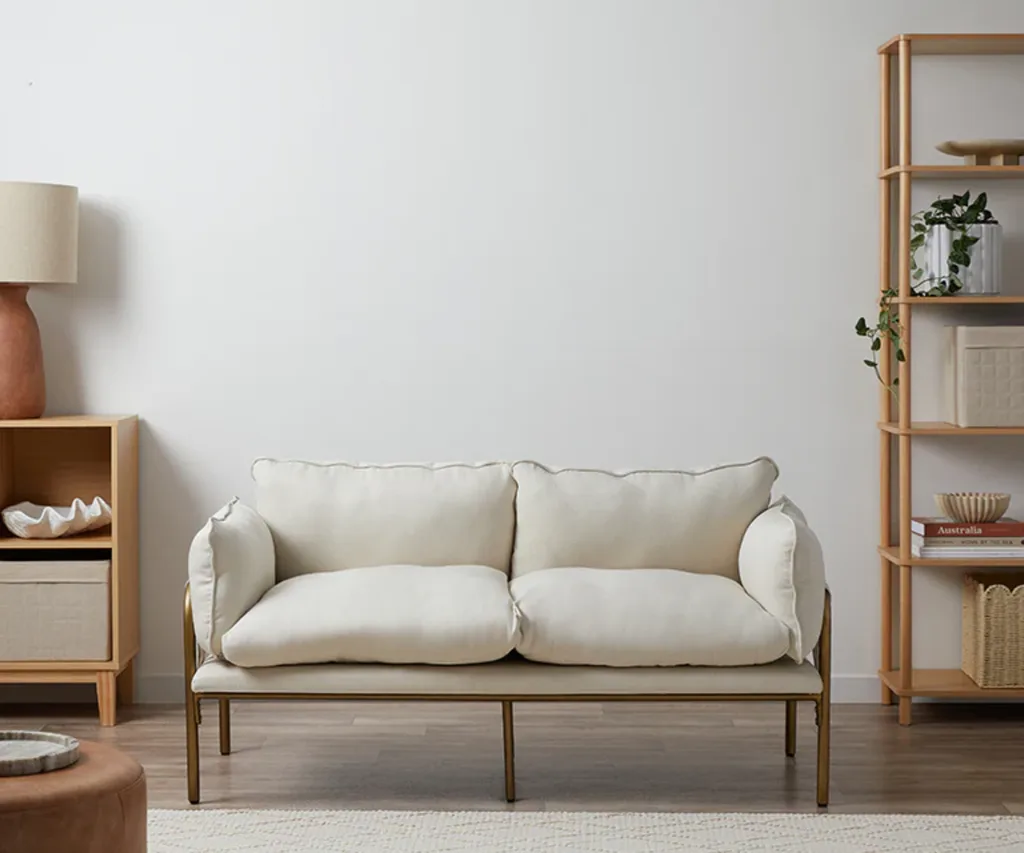 We can’t go past this funky terracotta-toned sofa from Fantastic Furniture. It is padded with high-quality foam, has long armrests to help you relax, and is only available to buy online.
