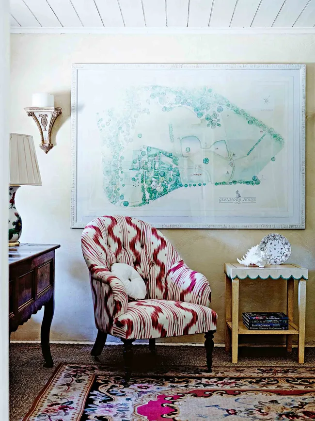 The home’s decor has a British sensibility, in part due to Larry’s Scottish heritage. Mickey isn’t interested in what’s considered the latest style. “Homes are about the story of people’s lives — that’s what matters — and this is the story of our combined life,” she says. “It’s about being real and authentic, and true to who you are.” She doesn’t buy decorative pieces according to plan. “I don’t buy a thing for a spot. Everything here comes with a huge emotional and sentimental attachment.”