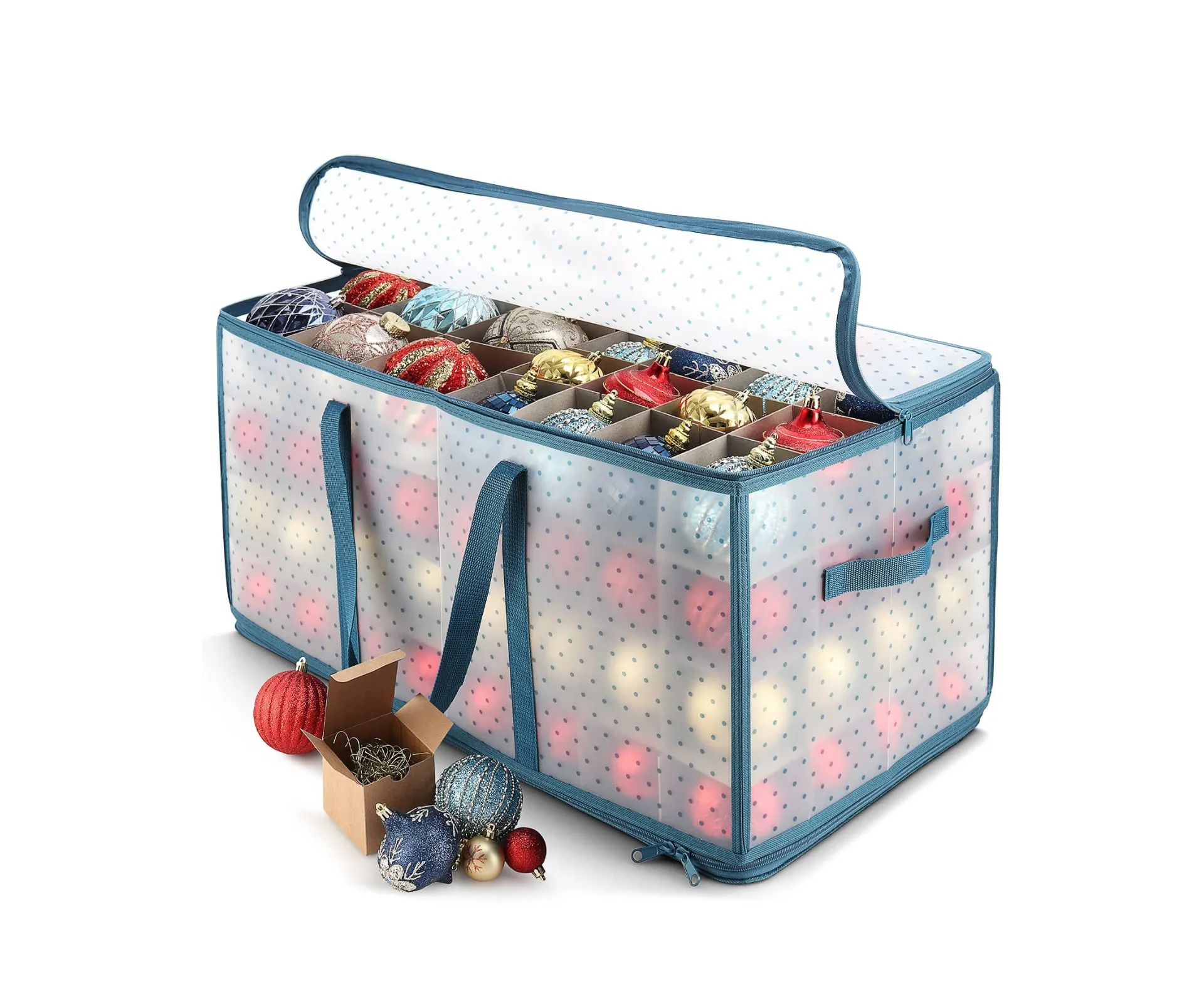 Large Christmas ornament storage box with adjustable dividers, $60.01, Amazon