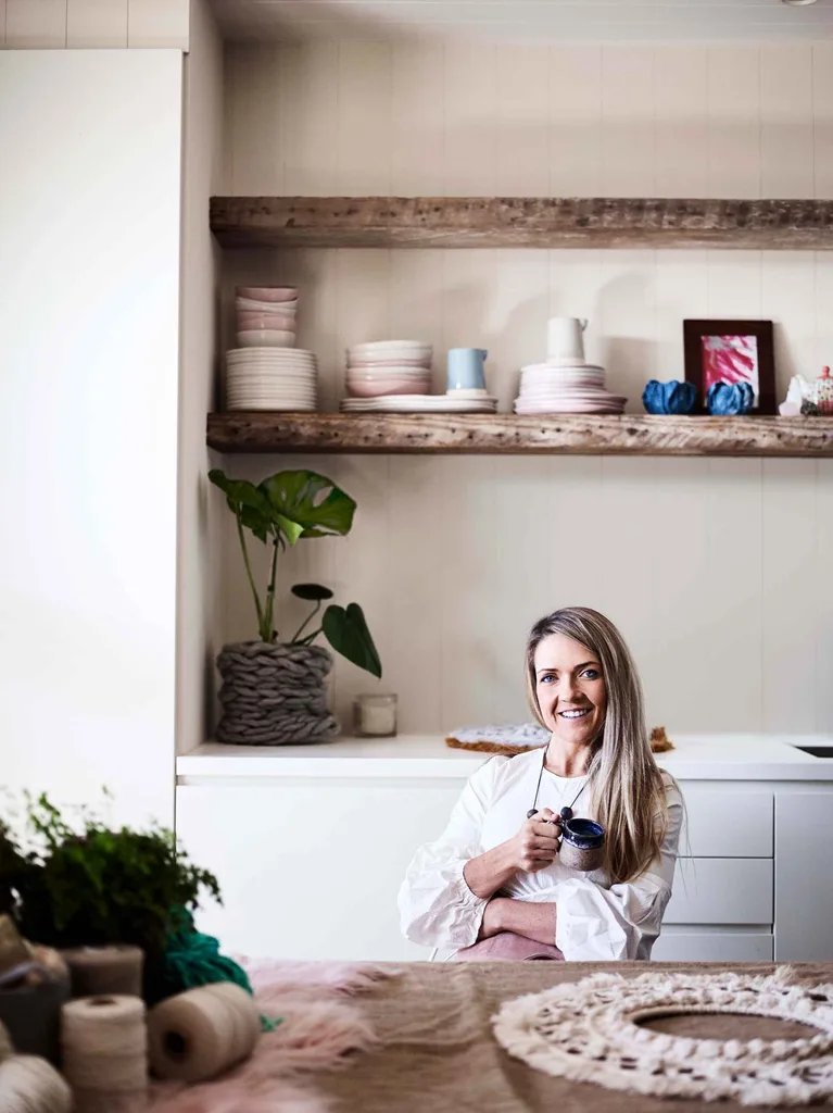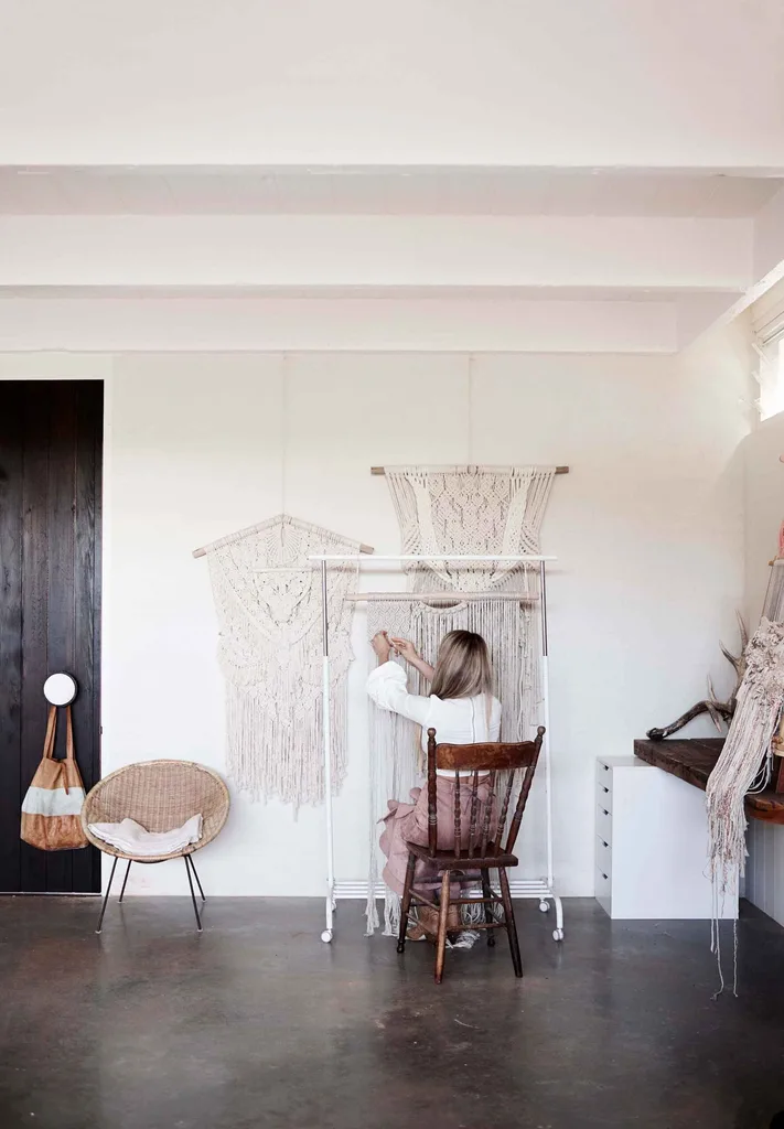 A favourite outing is eating croissants in the park or walking along nearby Bombo Beach, where Lola searches for driftwood to incorporate in her wall-hangings. “Having our feet on the ground and being near each other is all we need in this busy world,” Brydie says.