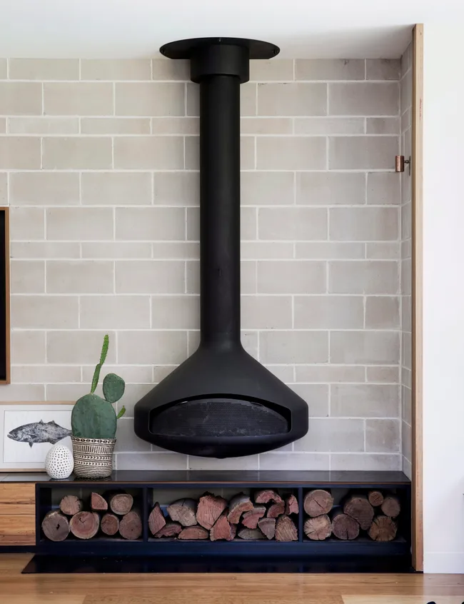 With the right storage solution, a stack of wood by the fireplace will double as a design feature that transforms your living room into a cosy and inviting area – just add a plush couch.