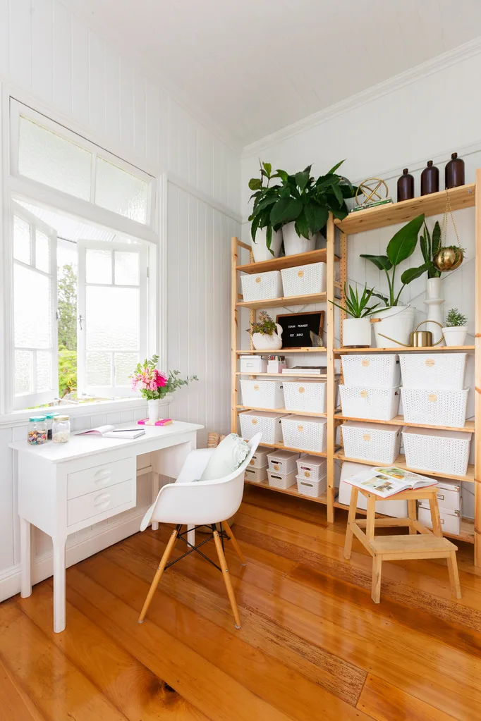 Keeping your home office as clean and clutter-free as this may seem near impossible, but, we’re here to prove you wrong! With some clever (and affordable) storage solutions like this IKEA shelving unit and handy storage baskets from Kmart, your office (and brain) will feel refreshed in no time. Don’t forget to add a few indoor plants to the mix.