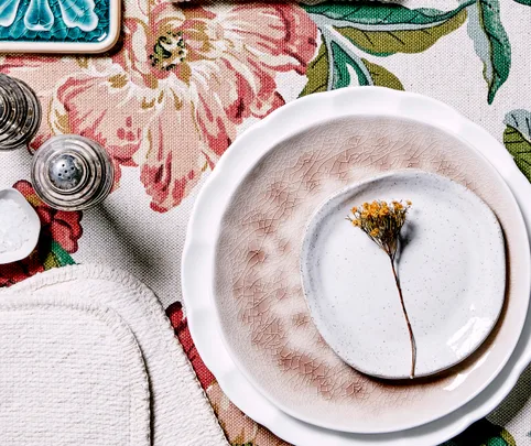 ‘Daintree Green’ linen tablecloth , from $215/145x250cm, Bonnie and Neil; bonnieandneil.com.au