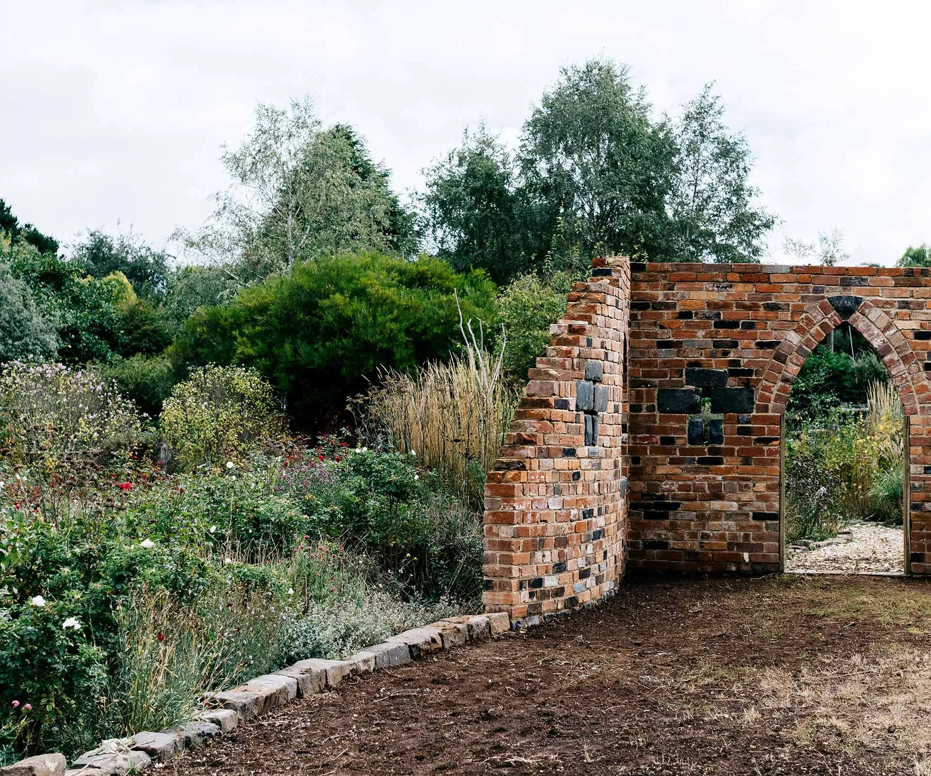 The brick folly by Tom Hamlin of Hamlin Landscapes is the centrepiece of the rose garden and was built using recycled bricks. Photography: Marnie Hawson
