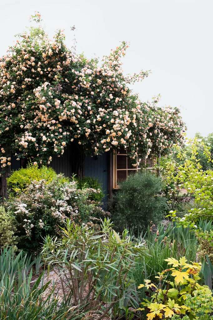 ‘Desprez à Fleurs Jaunes’ rose is one of the feature plants at St Brigid’s, a property in Orange, NSW, where the owner Elizabeth Richards transformed a dilapidated church she bought years ago into a home.