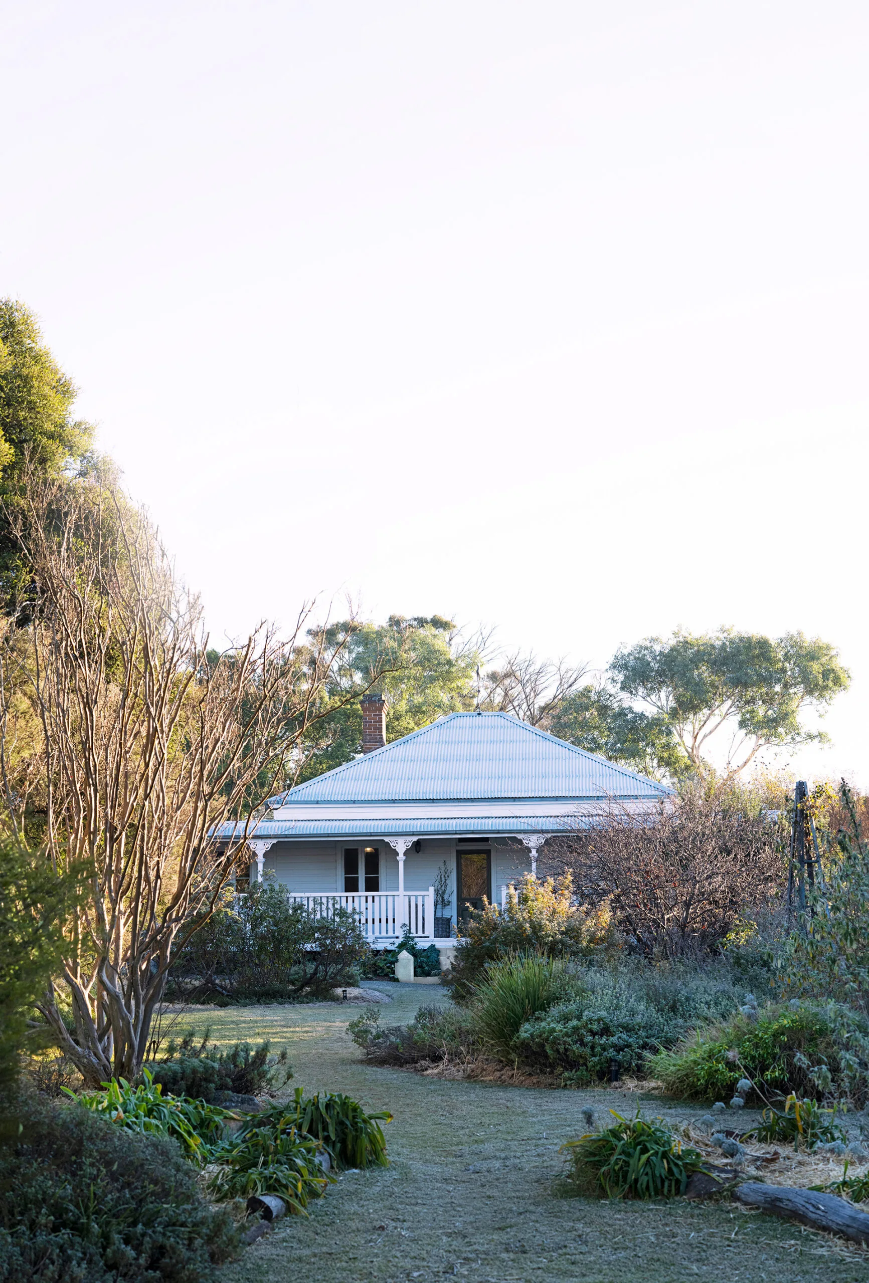For the Willow’s Tale bathroom, Kasturi envisaged a bygone era and sourced a luxurious claw-foot bathtub from Highgrove Bathrooms in Newcastle, together with fittings to match the look. The curtain materials came from a textile store in Katoomba, and were sewn to size by Coolah local Rhonda Dunne. A graceful hawthorn plant from the garden adds colour in the corner.