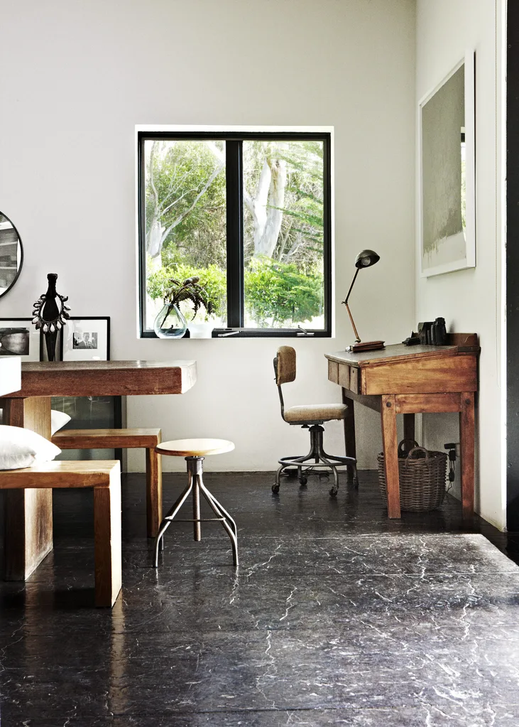 What Dariusz originally had in mind was actually an extremely spare home, all hard surfaces and minimal vibe. But then, with only the outer frame of the building finished, he met his wife Becks Welch, and the decorating direction changed tack.