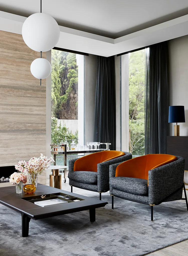 For the interiors, Swee paid homage to the style of a traditional South American polo club with a litany of handsome pieces: dining chairs slung in natural tanned hide, a chesterfield sofa, cognac leather armchairs, bar carts and dark timber. Adding to the distinguished equestrian spirit are wool rugs, oversized shaded lamps and rich velvet upholstery for extra warmth. Faced with a tight delivery deadline, Swee says Tracey’s decisiveness was a great asset. The two were like-minded throughout the process, ultimately transitioning from a working relationship to a firm friendship. “We had lots of kismet moments and there was great synergy,” says Swee.