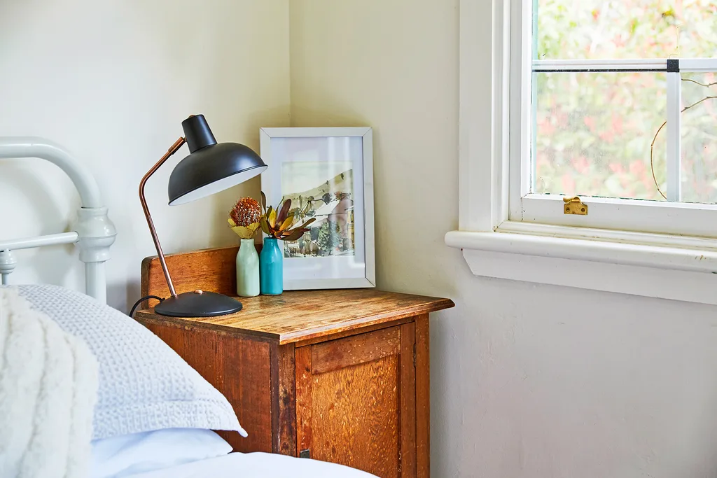 Researching other Airbnb homes in the area and asking family and friends what they liked – and what they didn’t like – in holiday rentals helped us work out our approach. We decided to make the house feel modern but with a nod to its heritage. The first thing we did was organise for the original floors to be sanded, and the carpet in the front bedroom to be replaced. These made a huge difference. We also changed most of the curtains to wooden venetian blinds, and updated most of the light fittings.