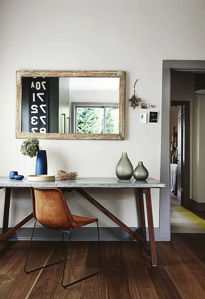 Study A wall-hung mirror helps to maximise natural light and a sense of space.