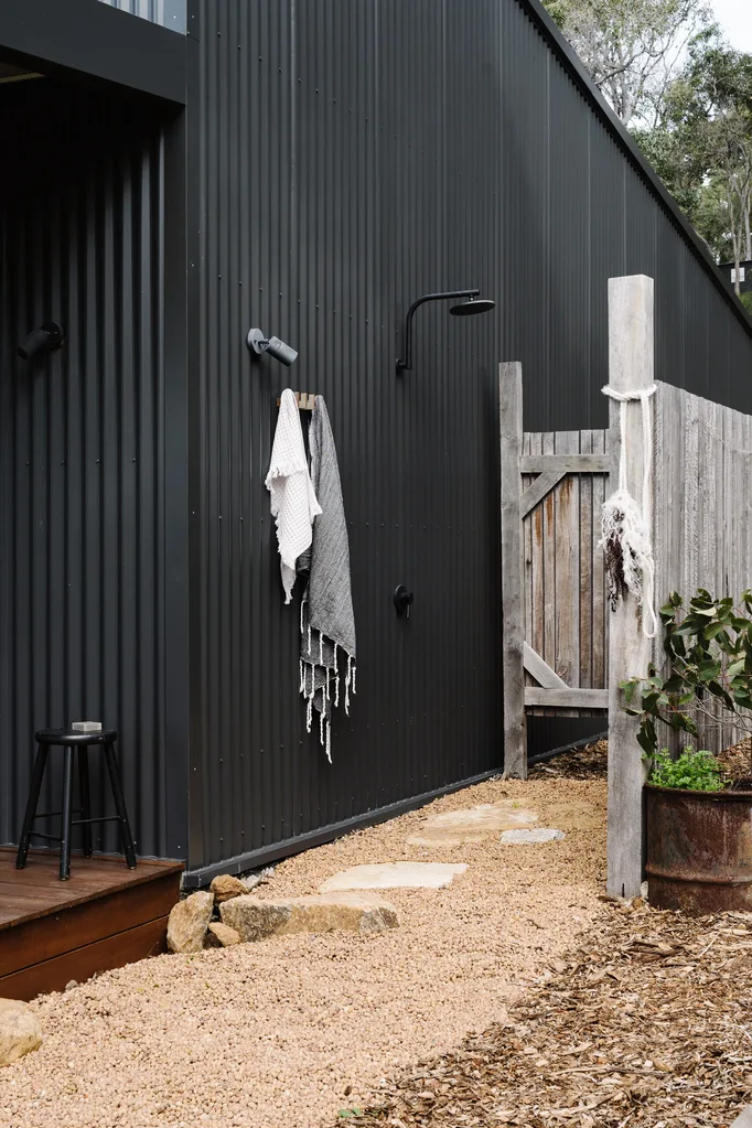 The outdoor shower is handy after beach visits: “The boys pretty much only use this one during summer,” says Tanya.