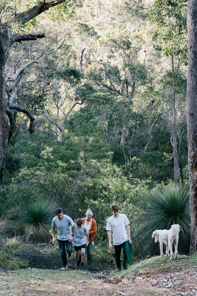 The interiors are very comfortable and family friendly, but it’s the outdoor world that beckons most here. The home is ringed by a forest of marri and jarrah trees, both species endemic to the area, and Tanya adores the birdlife attracted into these canopies. “We see a lot of red-tailed cockatoos and Carnaby’s black cockatoos — they both feed off the gumnuts on the marri trees,” says Tanya. “The red-tailed cockatoos are endangered so it’s lovely to see them. They’re so raucous!”