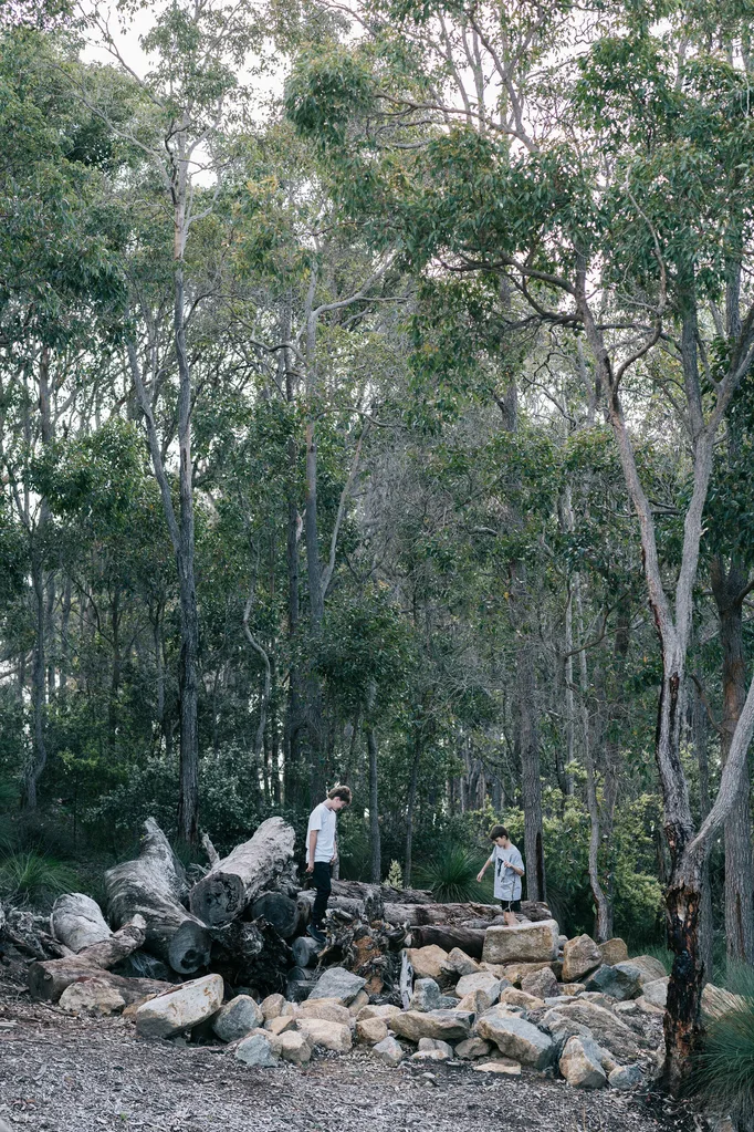 Beneath the branches, in the dancing light, Tanya and Duncan have positioned a firepit, which has become a magnetic destination point for the family during the cooler months, when Tanya cranks up the fire oven. “I love cooking and sharing food around the fire,” she says. Bush and beach walks, swimming, snorkelling, and mountain biking are year-round activities for Tanya and her outdoorsy family. “The thing I love about the bush is the freedom, and it brings back good childhood memories.”