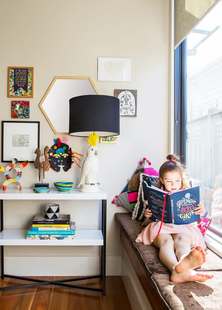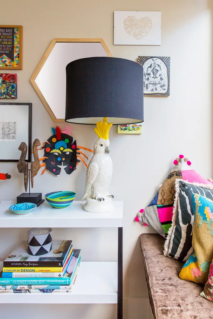 A cockatoo lamp from Studio Australia adds a playful feel to the reading nook.