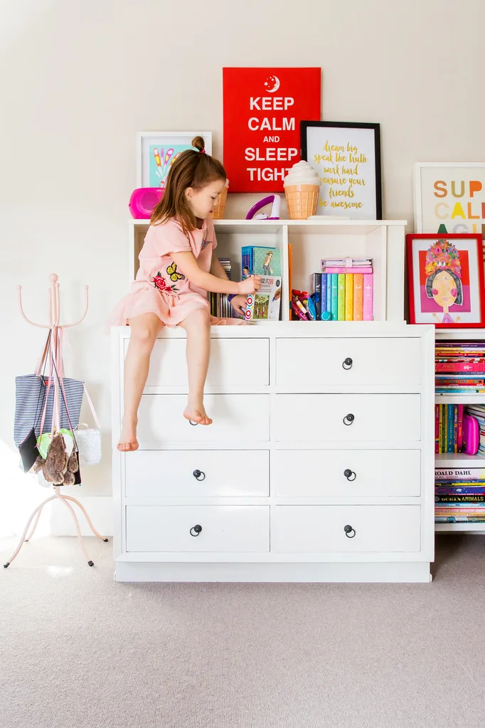 A dresser stores toys, books and other treasures.
