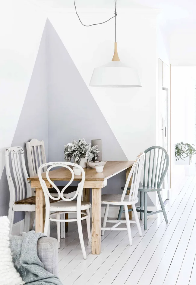 “I can’t drive past a council clean-up without slowing down,” says Marnie. The weathered coffee table was $5 from Gumtree, while the dining chairs are vintage or found and painted by the kids.