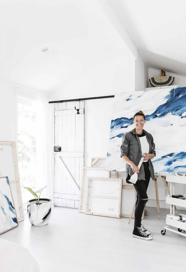 Art Studio “I use it every day as my art studio and my parents stay there for months at a time when visiting us from Ireland,” says Marnie. The limited-edition pot in the studio is a collaboration between Marnie McKnight and Designtwins.