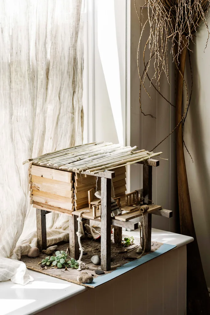 Good-quality rugs, vintage oil paintings, books, beeswax candles and the children’s artworks are other constants in the Read household.