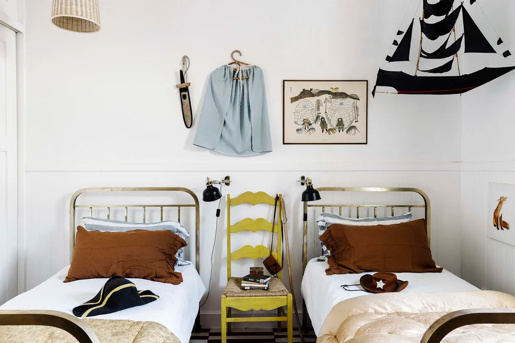 The brass beds in the boys’ bedroom were a lucky find on Gumtree.