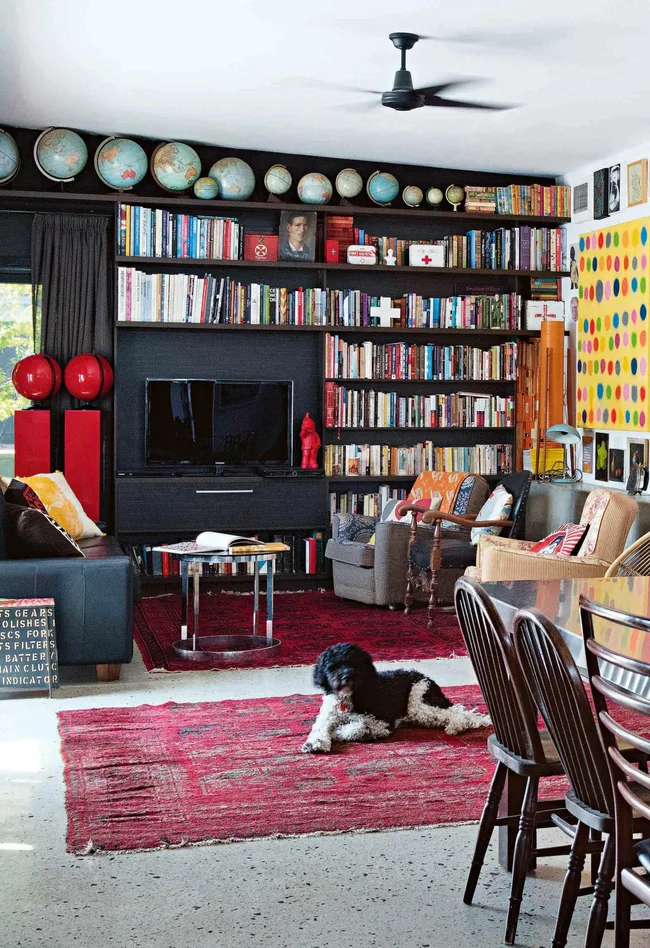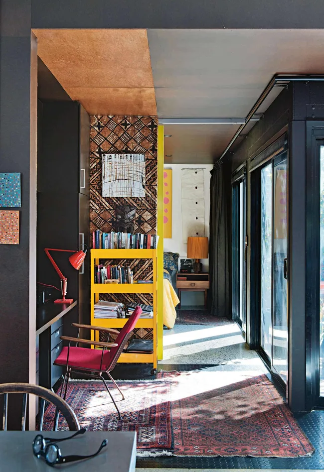 Study nook The hardworking Pirelli rubber floor is softened by layered vintage rugs.