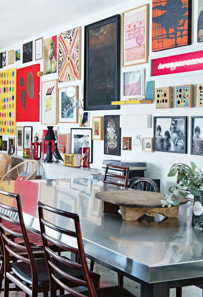 Living area Resene’s Black White paint provides a backdrop to the vast art collection. “It’s such a great colour on which to display art because it greys off a bit, it’s not a stark white. I’ve used it in all the houses I’ve lived in and now my kids use it, too,” says Leonie.