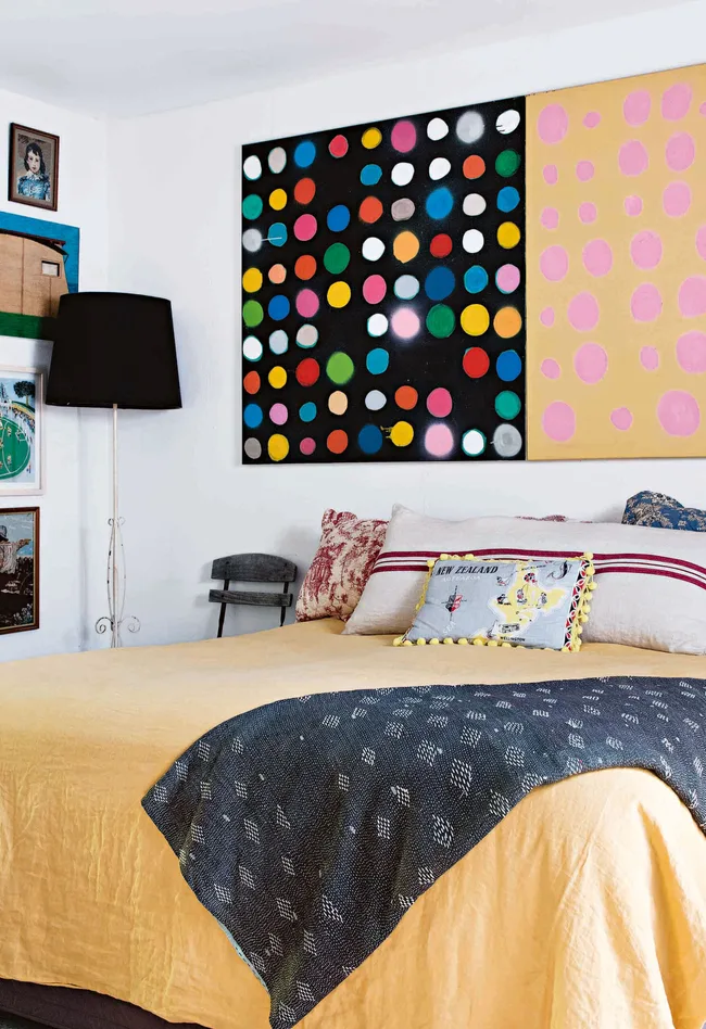 Bedroom The bedside table is from Leonie’s favourite vintage shop, Old Values.