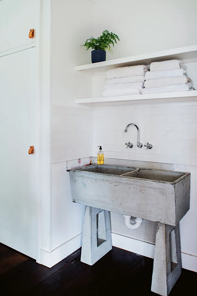 A concrete sink made by Everhard Industries in the mudroom (still a work in progress, says Jayde) facilitates clean up after outdoor work and play.
