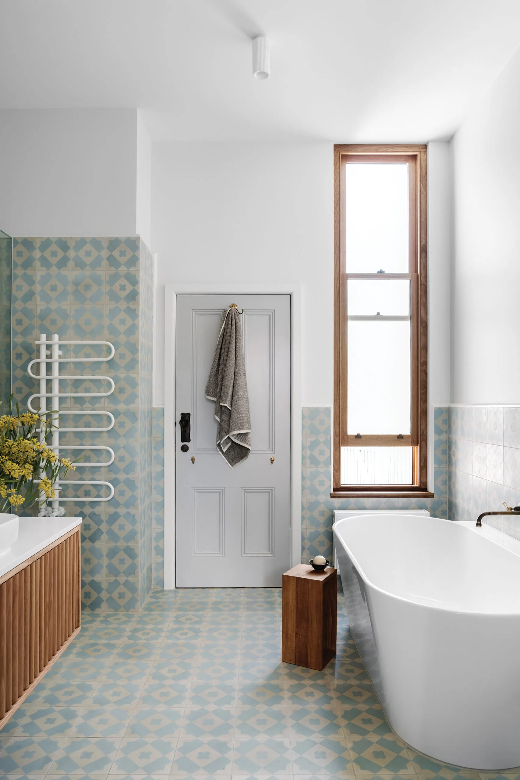 Meanwhile, says Megan, decorative tiling around the home’s three fireplaces is echoed in the encaustic-look tiles of the bathrooms. “They provide a simplified contemporary homage to the decorative crafts of the early 20th century.”