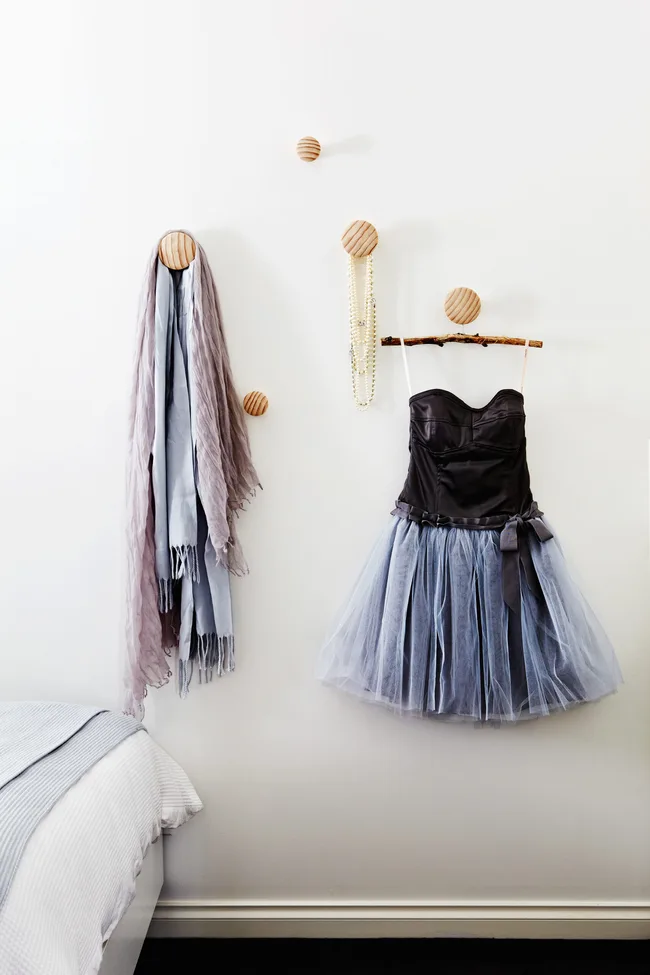 Always save some room for the sentimental bits and bobs – on Maddie’s wall is a treasured dress made by Grandma.