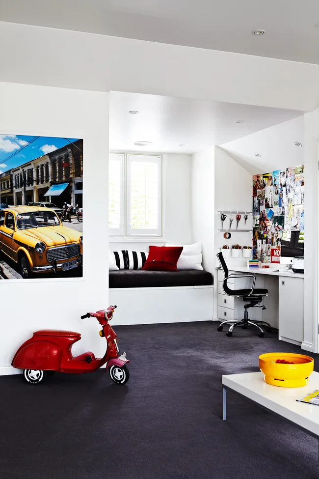 “You can use as many colourful artworks and accessories and mix as many eras as you like as long as you set them against a neutral backdrop,” advises Janita, who took the photo of the yellow taxi while on holiday in Thailand.