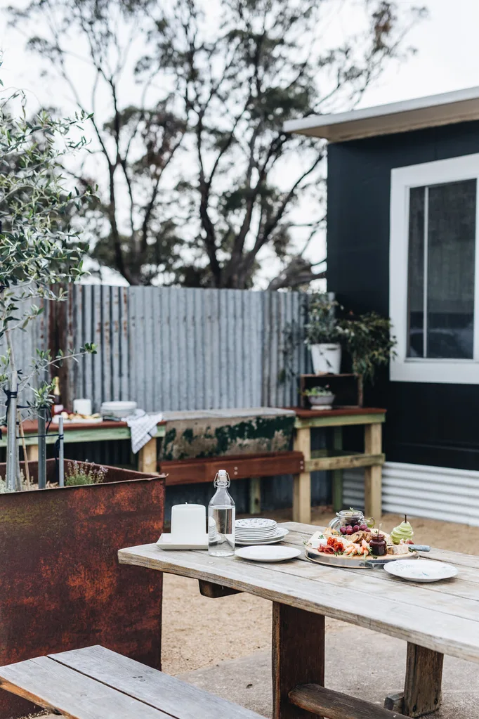 “You feel connected to the seasons and the land, and disconnected from a busy life,” says Elise. There is no television, but there is plenty of entertainment for visitors in the outdoor hot tub and fire pit. There is snow in the Southern Tablelands in winter, and this small wood burner provides much-needed warmth.