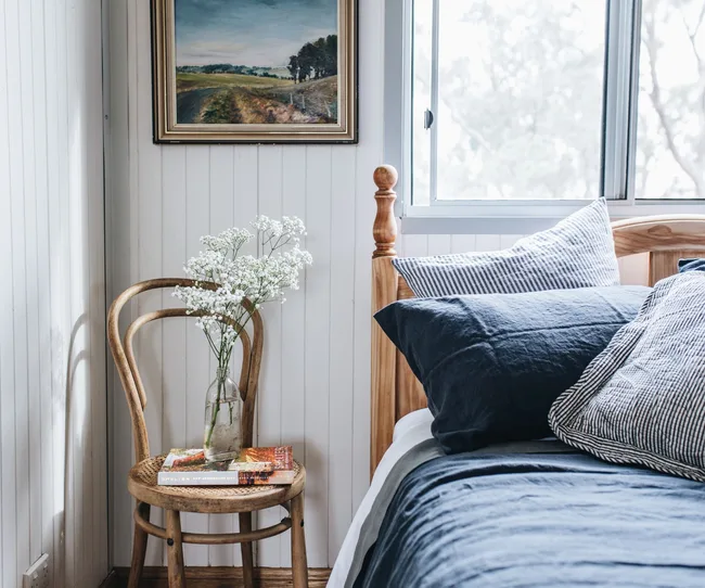 The three-bedroom, one-bathroom cottage sleeps six people. Elise has sourced all furniture and décor locally, picking up second-hand art, antiques and collectables from her travels and from local auctions.