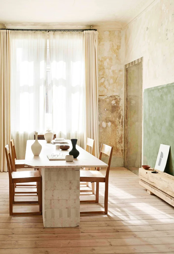 3. If you’re not willing to strip back your walls, consider a textured wall finish that will provide an imperfect element, such as limewash or Venetian plaster.