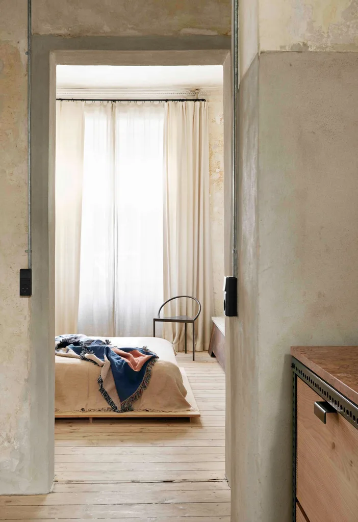 The couple’s apartment is more than a home, it’s been a personal project that was about honesty, which in Niels’ case meant an effort to find a way back to something basic. Symbolically, he removed the wallpaper, leaving the walls raw and exposed, and then he drew inspiration from nature – earth, clay, sand and stone. Furniture, art objects, books and lamps were chosen with emotion at their core.