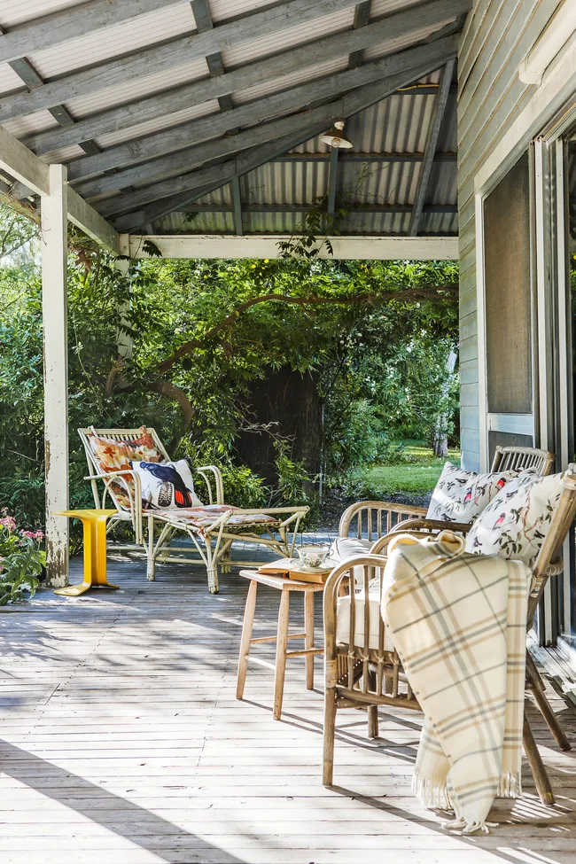 A collection of cane furniture calls visitors to relax on the front verandah.