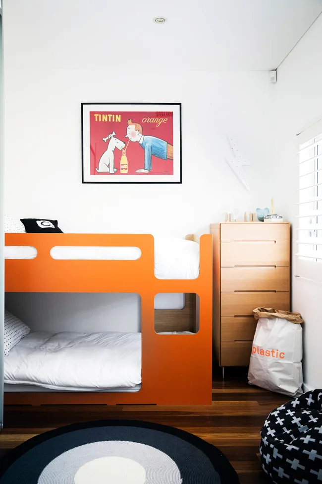 A vintage Tintin print was a gift from Clare’s mum – along with the bunk bed from Domayne, it adds a sense of fun to the boys’ room. Tip: Sticking to a neutral palette means the furnishings can be updated as your child grows.
