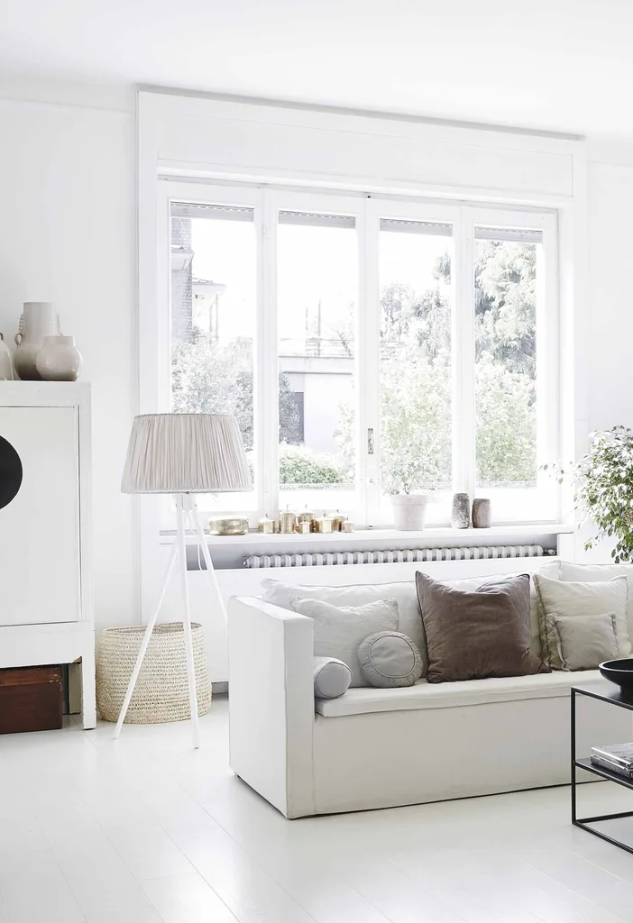 Formal living White is the dominant colour on the surfaces, punctuated by black accents in the furnishings. Overall, it’s the perfect balance of light and dark.