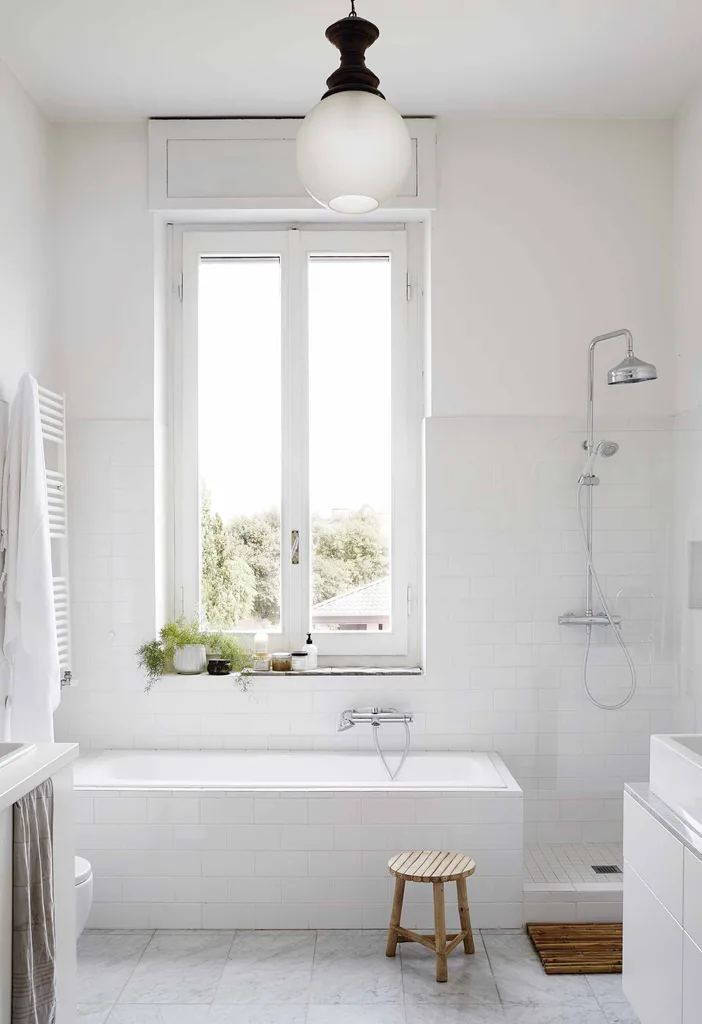 Bathroom Grand proportions and marble floor tiles belie the simplicity of this ensuite.