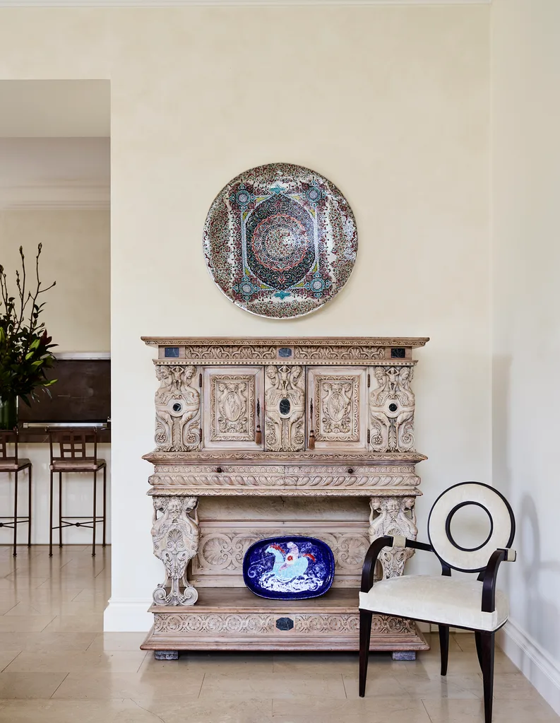 Against the neutral backdrop of walls painted in Dulux Chalk USA, custom render and stone detailing, and Italian fixtures and fittings, the owners opted for a selection of antiques. The home really expresses the owners’ character. “They have a real sense of community,” says Rob. “They weren’t obsessive about privacy. The house is quite open to the street and passersby. They like having that sense of connectedness.”