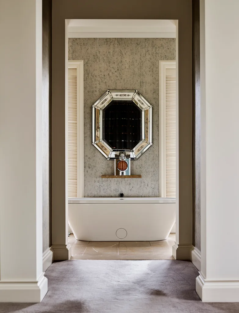 French Art Deco mirror, Edward Clark Antiques. Bette ‘Classic’ bath, available from Argent Australia.