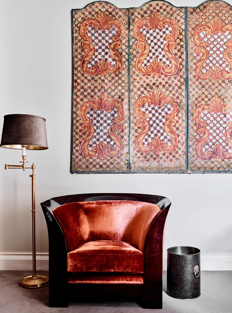 French floor lamp, Graham Geddes Antiques. 19th-century screen, Edward Clark Antiques.