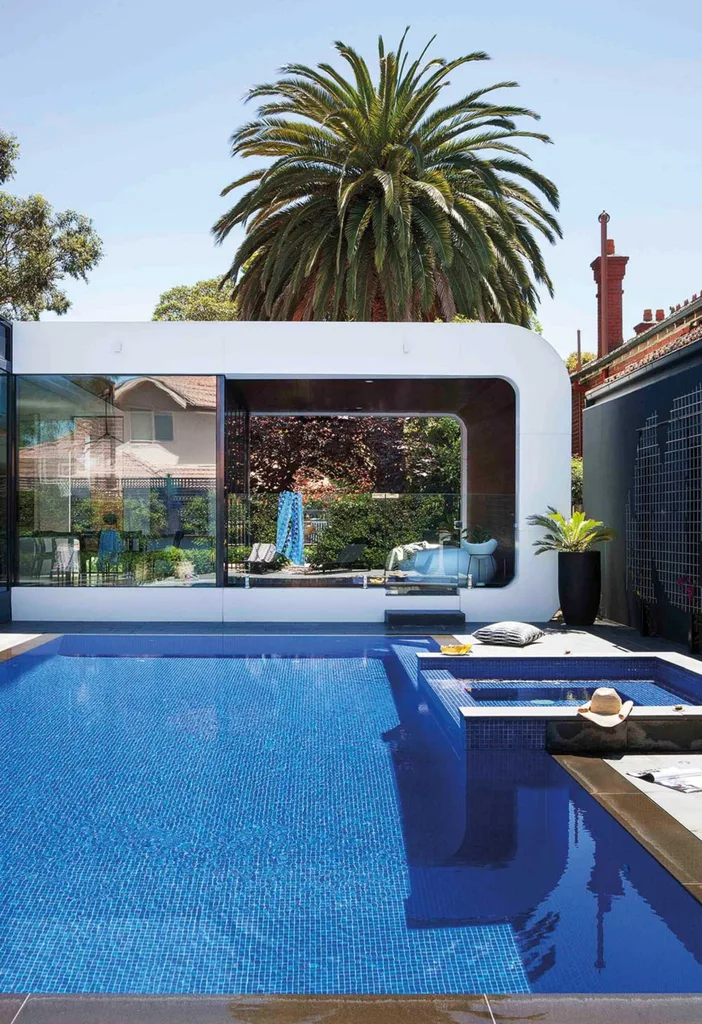 But it’s the curvilinear cabana which offers indoor-outdoor perfection and creates a sense of drama. “Our brief to the architect was fairly open,” says Joe of the space, which was designed by LSA Architects. “We were so excited by what they came up with!”