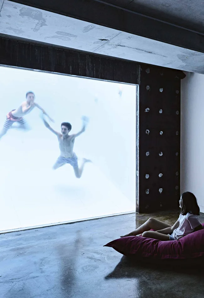 Basement The underground teenagers’ retreat offers a remarkable view of the pool, framed by Perspex, as well as filtered natural light. A Fatboy bean bag from Hub Furniture is a comfy spot to relax.