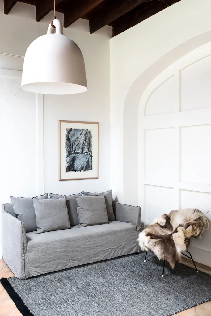 Layers of texture create a cosy and inviting living space. The ‘Joe’ linen sofa is from MCM House.