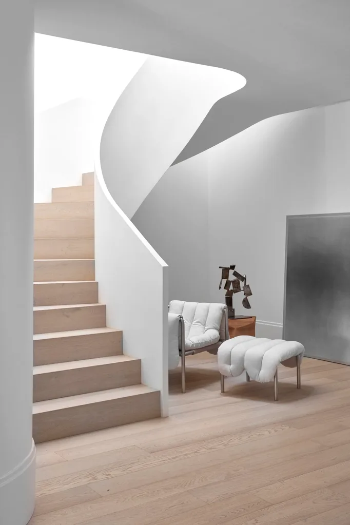Imogene’s pride and joy? “The entry sequence, with its beautiful curved stair and skylight above, is a sculptural element in a house that’s filled with art,” she says.