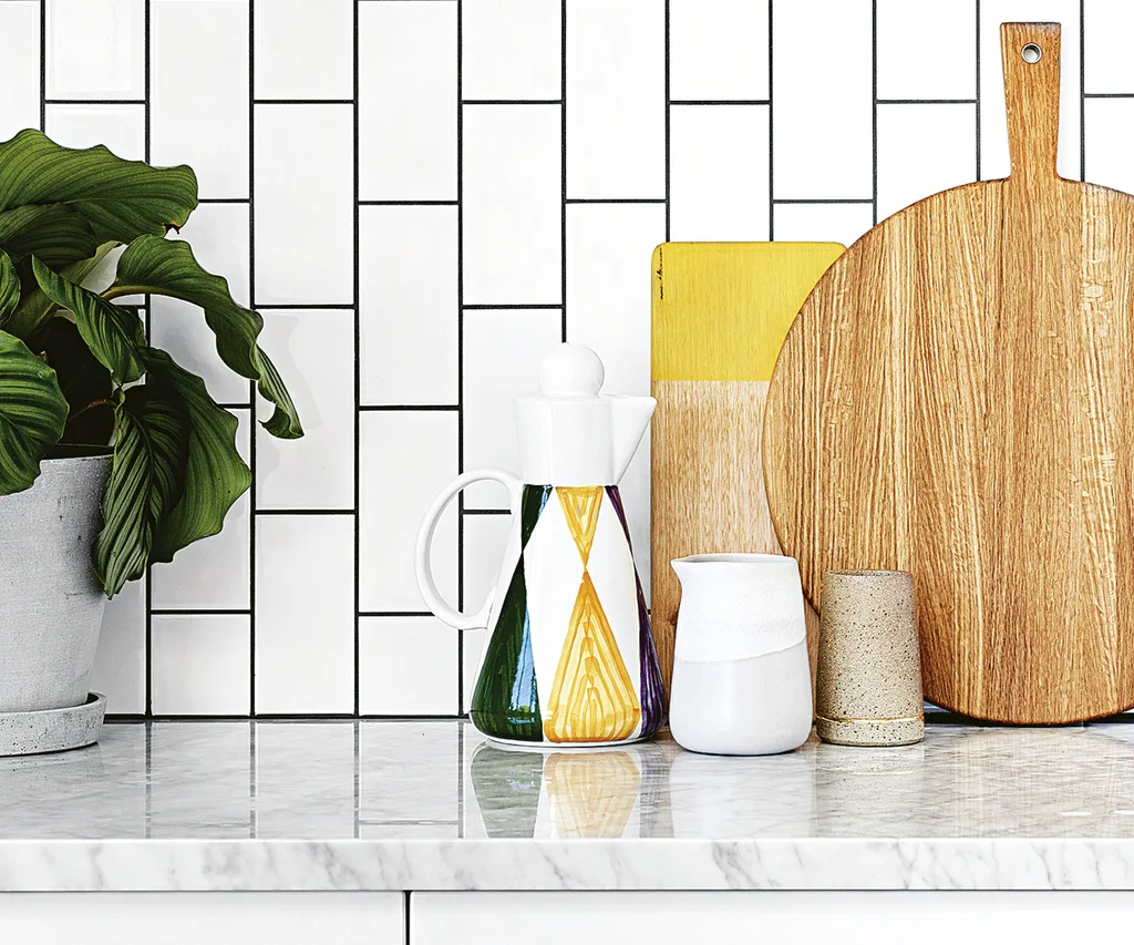 Kitchen inspo Matt white subway tiles and dark grout pack a punch. Photography: Brooke Holm | Styling: Marsha Golemac.