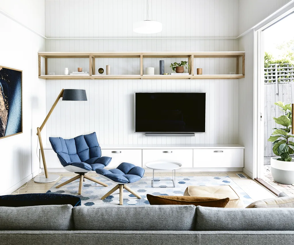 Storage inspo Low-level built-ins give you space to hide everything. Photography: Derek Swalwell | Styling: Bek Sheppard.