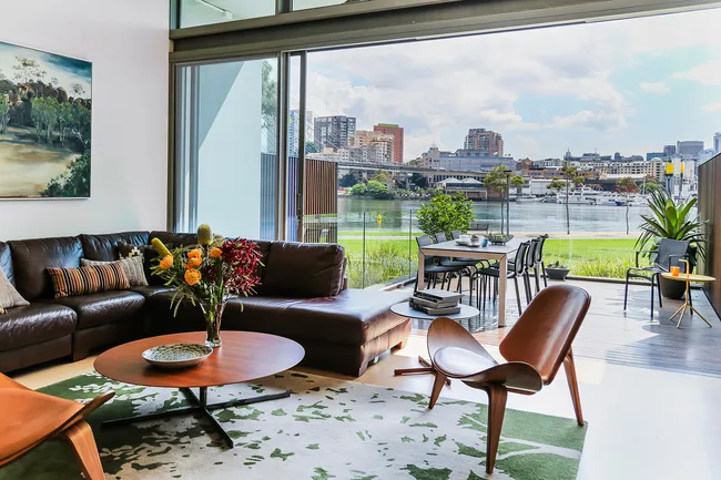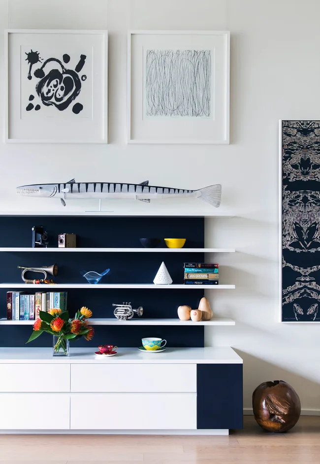 “When I met Karen and John, they felt they’d been ‘camping out’,” says interior designer Lisa Dinham. “The design brief was to select new furniture and fixtures to suit the architecture [by SJB] and the outlook.”