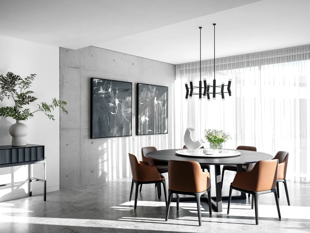 “I’m passionate about supporting local artisans – we have so much creative talent in this country,” says interior designer Linda Habak. A custom aged-brass pendant light by Melbourne designer Alex Earl casts a beautiful glow over the Concorde dining table, which is teamed with Grace dining chairs, all from Poliform.