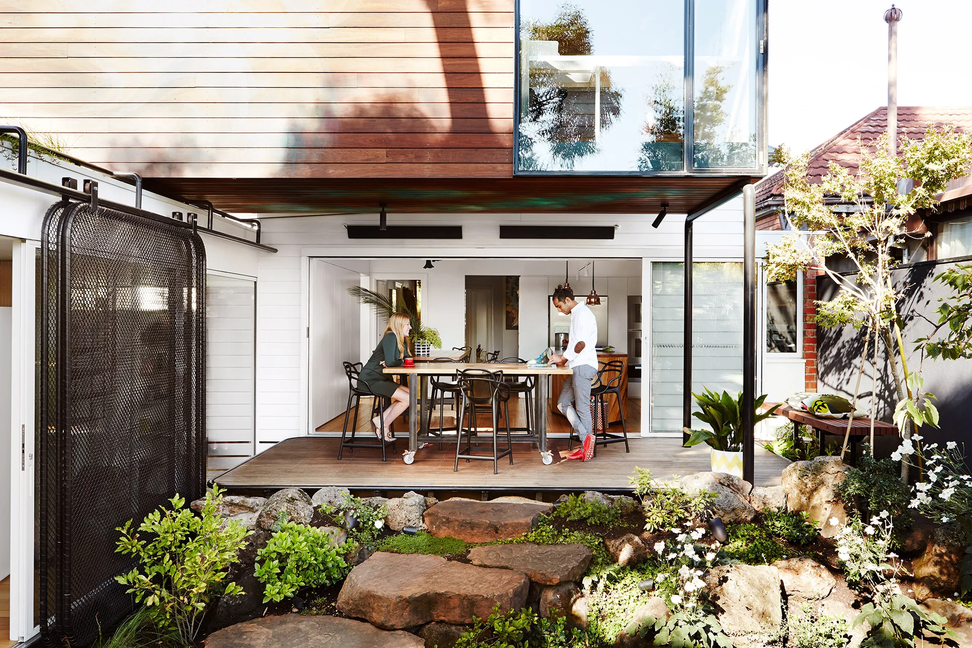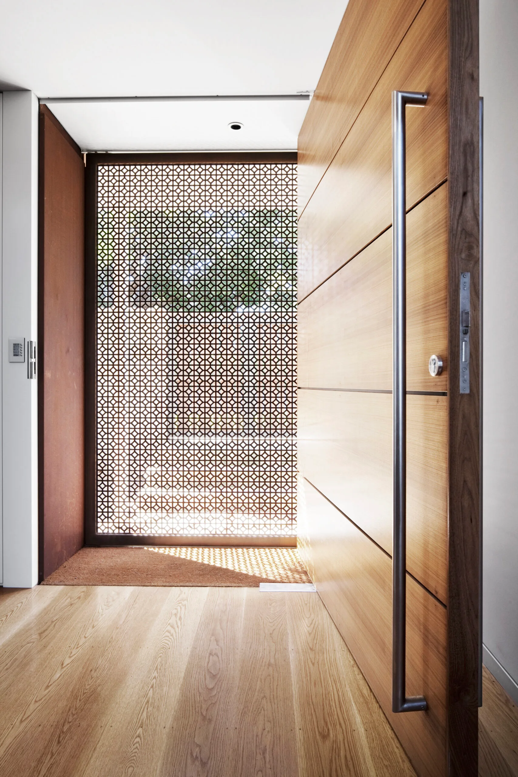 Laser-cut Corten steel screen door by MCK Architecture & Interiors.